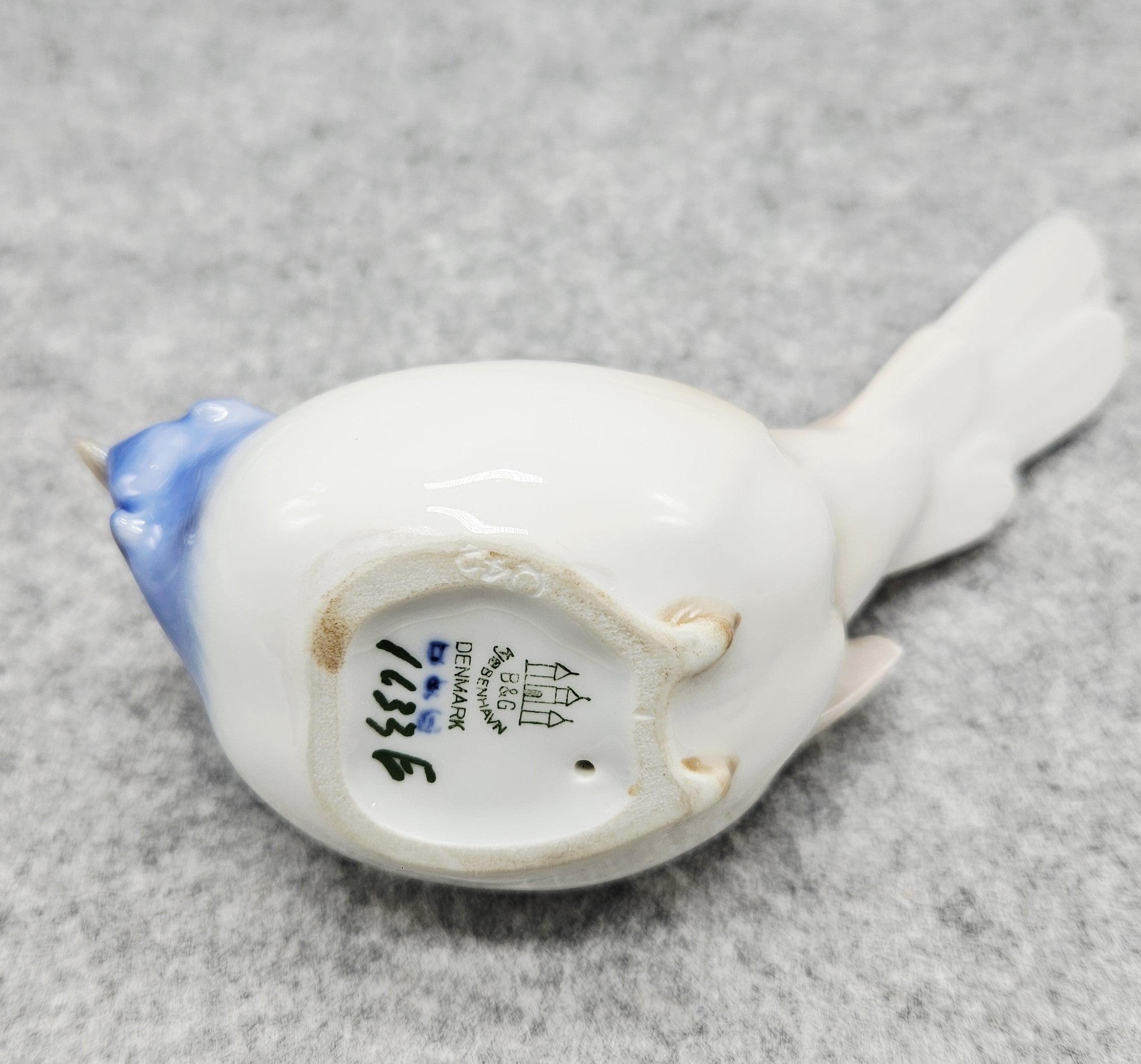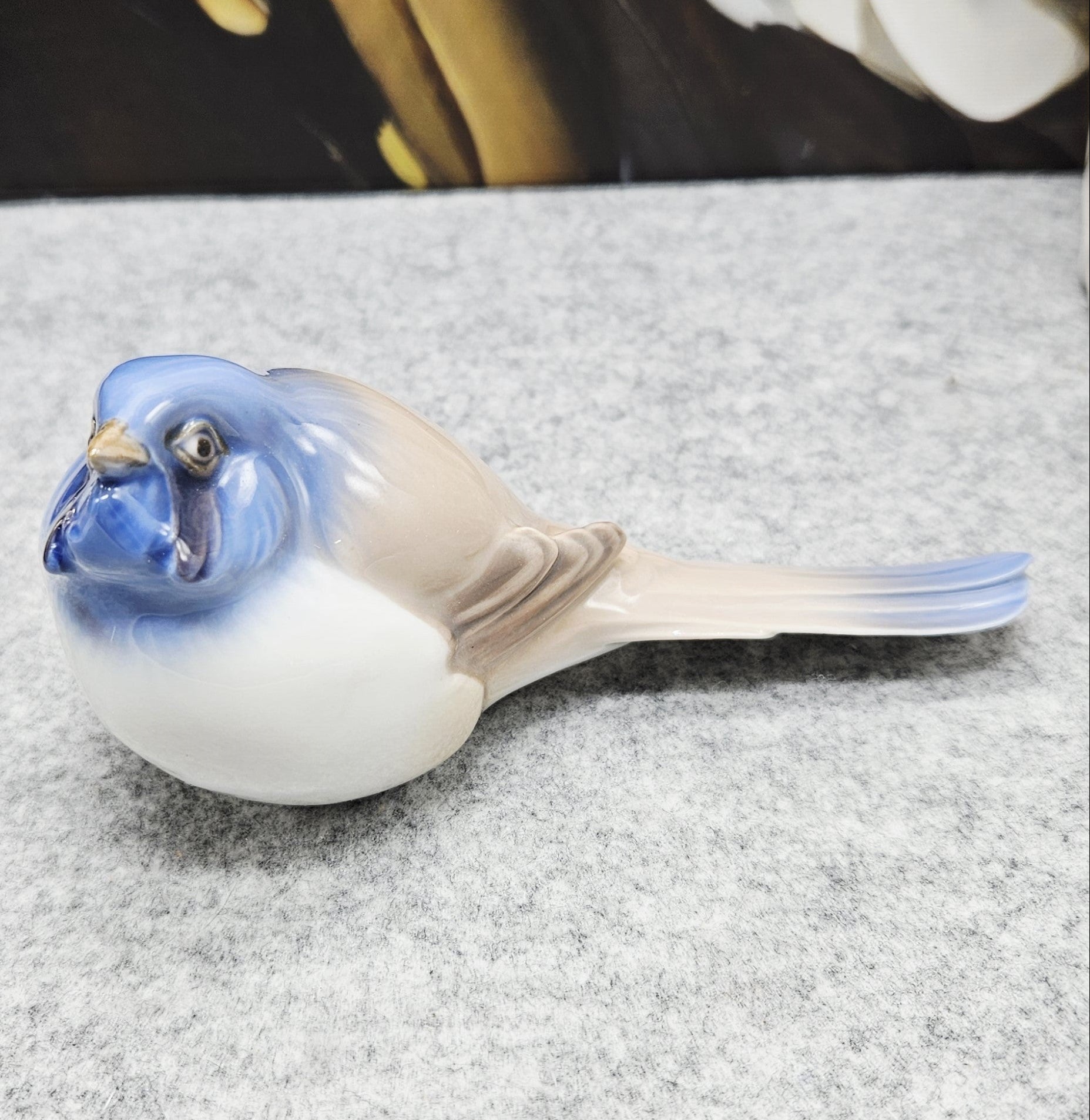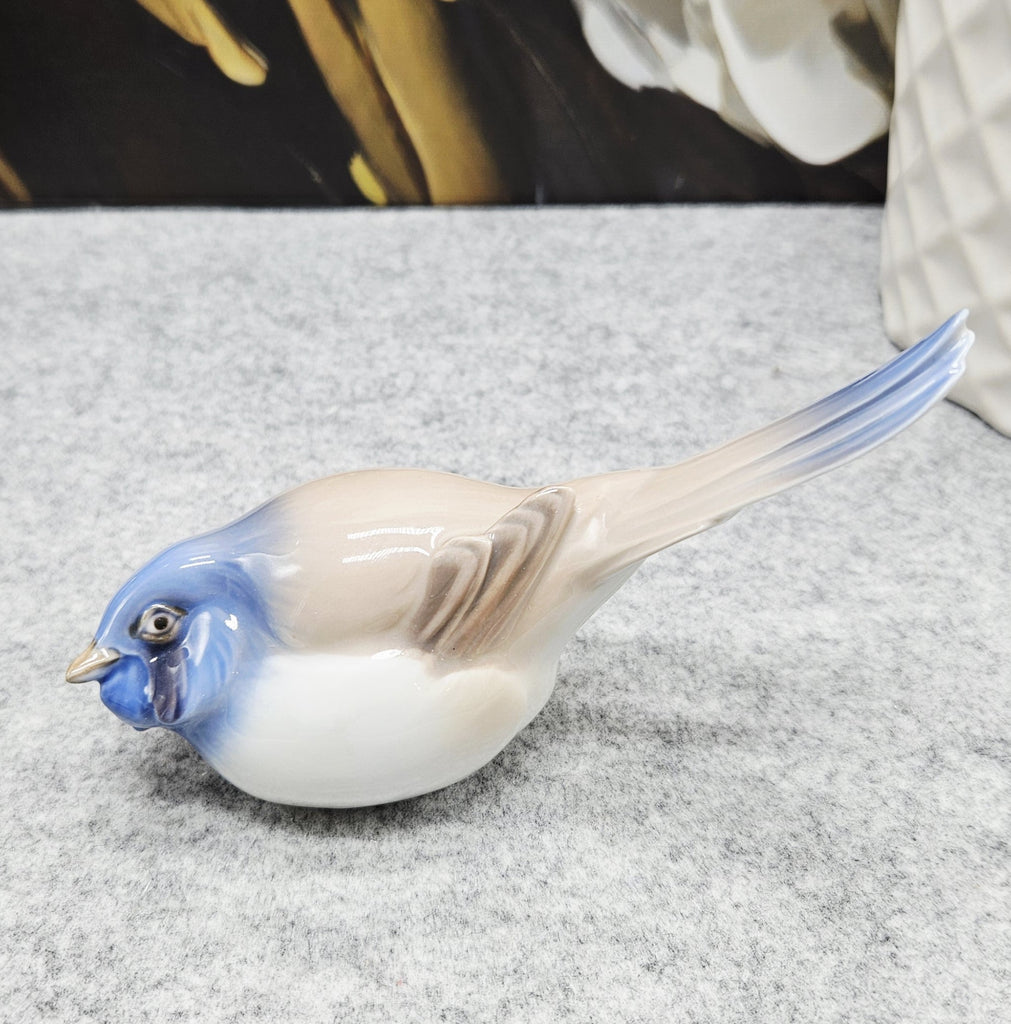 Eine schöne dänische Porzellanfigur, die von der berühmten Bing & Grøndahl Manufaktur in Kopenhagen hergestellt wurde. Dieser reizende, natürlich bemalte Vogel besticht durch seine sanfte Farbpalette aus Blau, bräunlichem Beige und Weiß, die der Figur einen lebendigen und subtilen Realismus verleiht.
