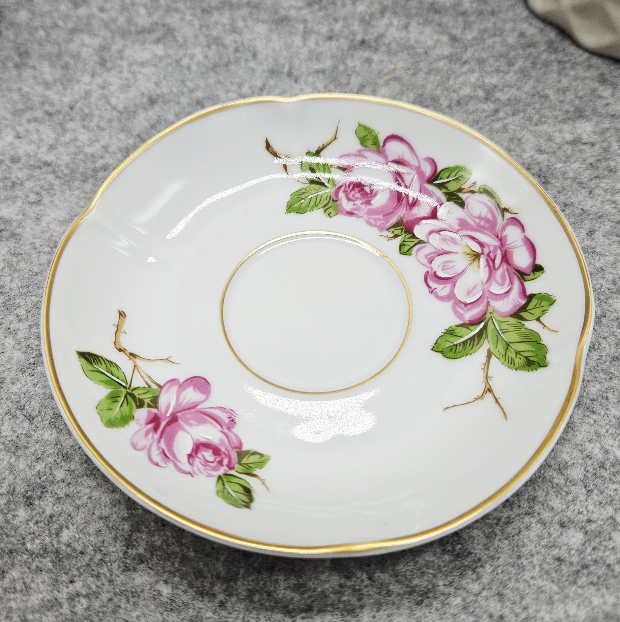 Handbemalte KPM-Porzellantasse mit Untertasse und Rosenblütendekor (90 – meinantik.de