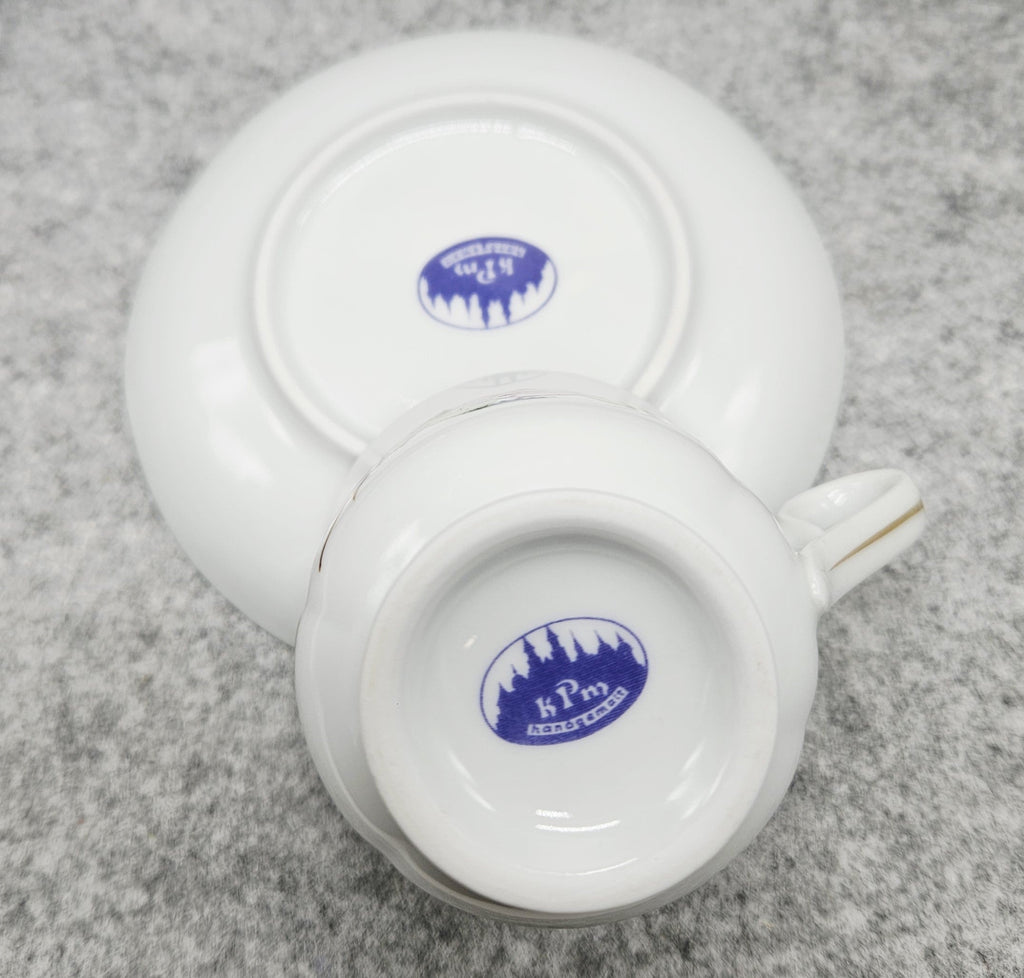 KPM-Porzellan ist bekannt für seine außergewöhnliche Qualität, die sorgfältige Handarbeit und die lange Tradition der Handwerkskunst, die bis ins 18. Jahrhundert zurückreicht. Jede handbemalte Tasse spiegelt das höchste Niveau der Porzellankunst wider - das zarte Design, die subtilen Farbabstufungstechniken und der präzise aufgetragene Goldrand machen sie nicht nur zu einem funktionalen Objekt, sondern auch zu einem kleinen Kunstwerk. Die Handwerker von KPM bewahren den authentischen Geist des deutschen Porzellans, bei dem jedes Detail von Tradition, Präzision und exquisitem Stil zeugt.