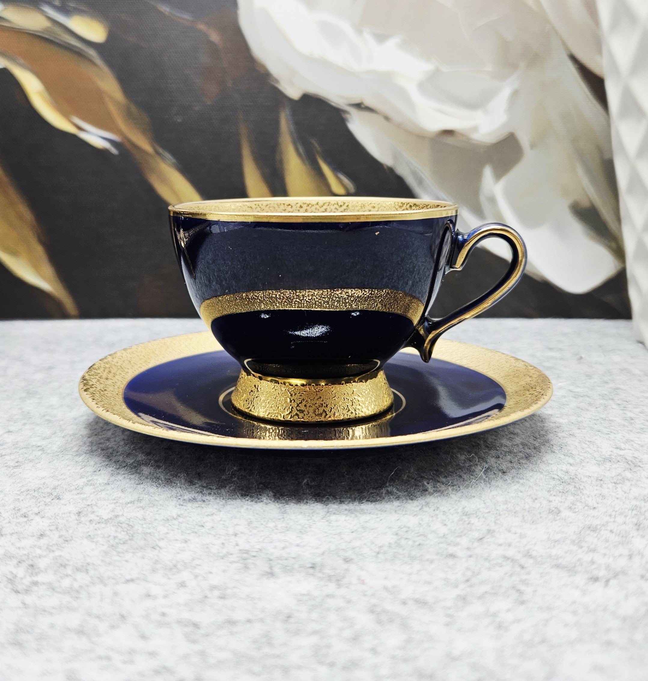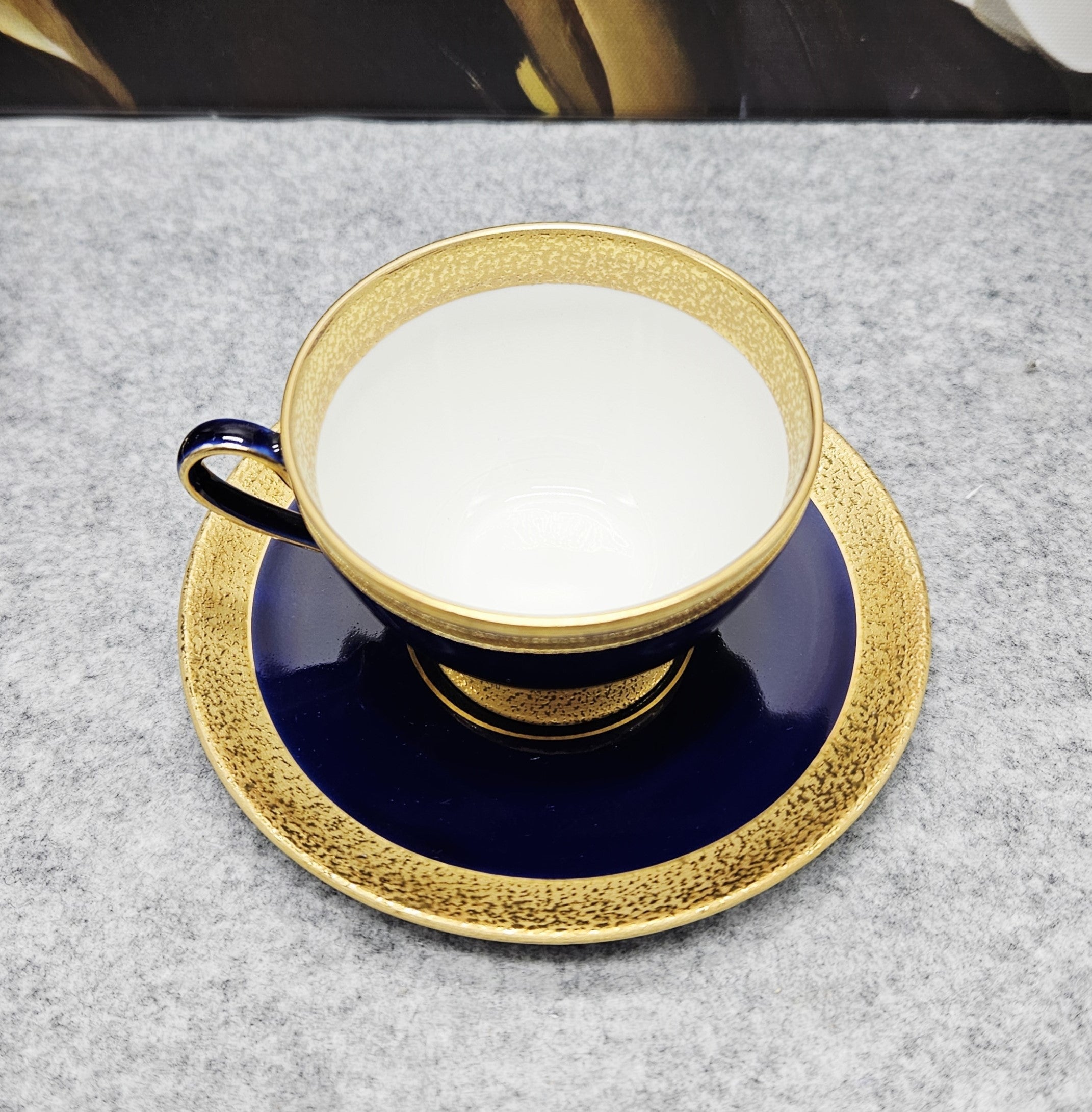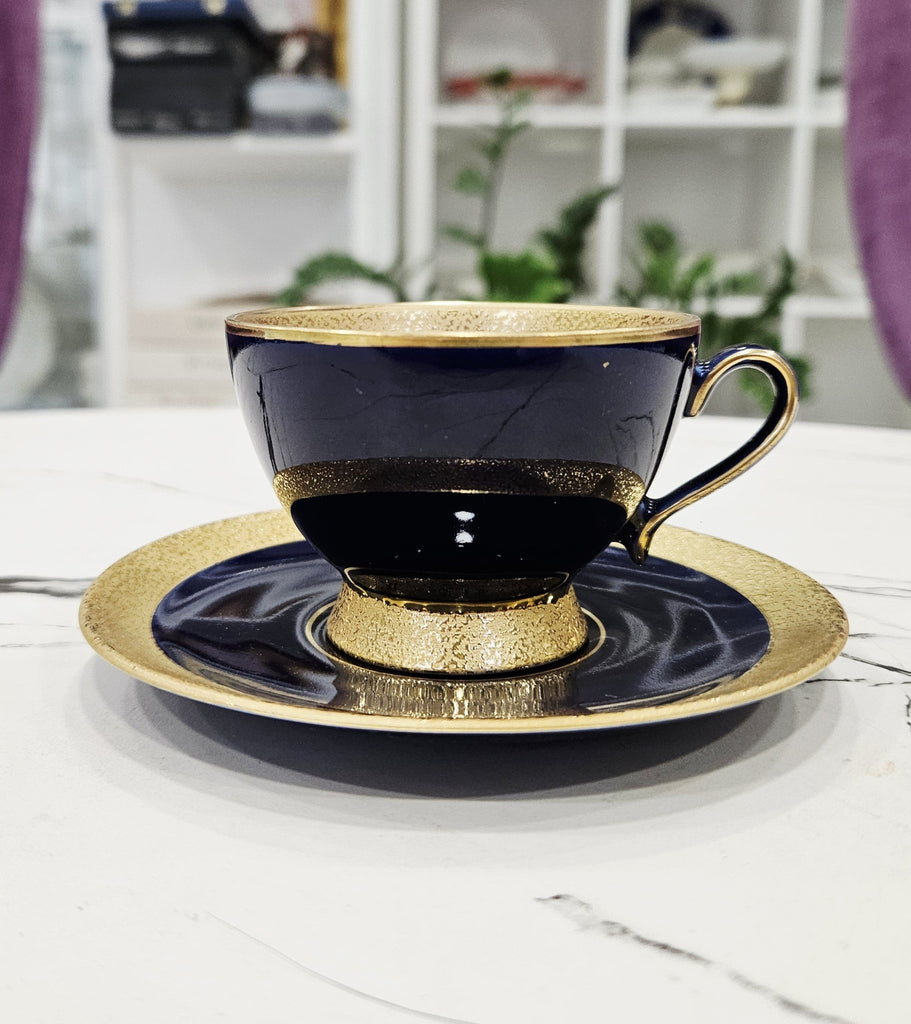 Sie ist aus feinstem Porzellan gefertigt und mit einer Echt Kobalt-Glasur überzogen, die ihr einen tiefen, satten Blauton verleiht - ein echtes Zeichen für aristokratischen Geschmack. Zarte goldene Ornamente schmücken jedes Detail und verleihen dem Service einen Hauch von Exklusivität und Luxus.