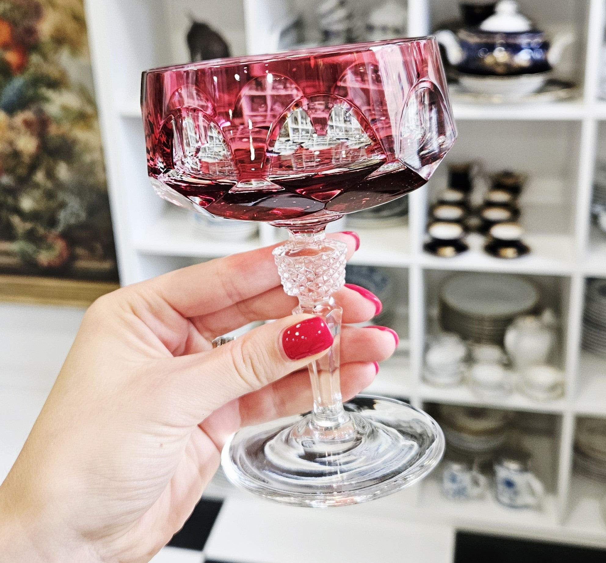 Luxuriöser, hochqualitativer Nachtmann Antika Kelch aus rotem Kristall – meinantik.de