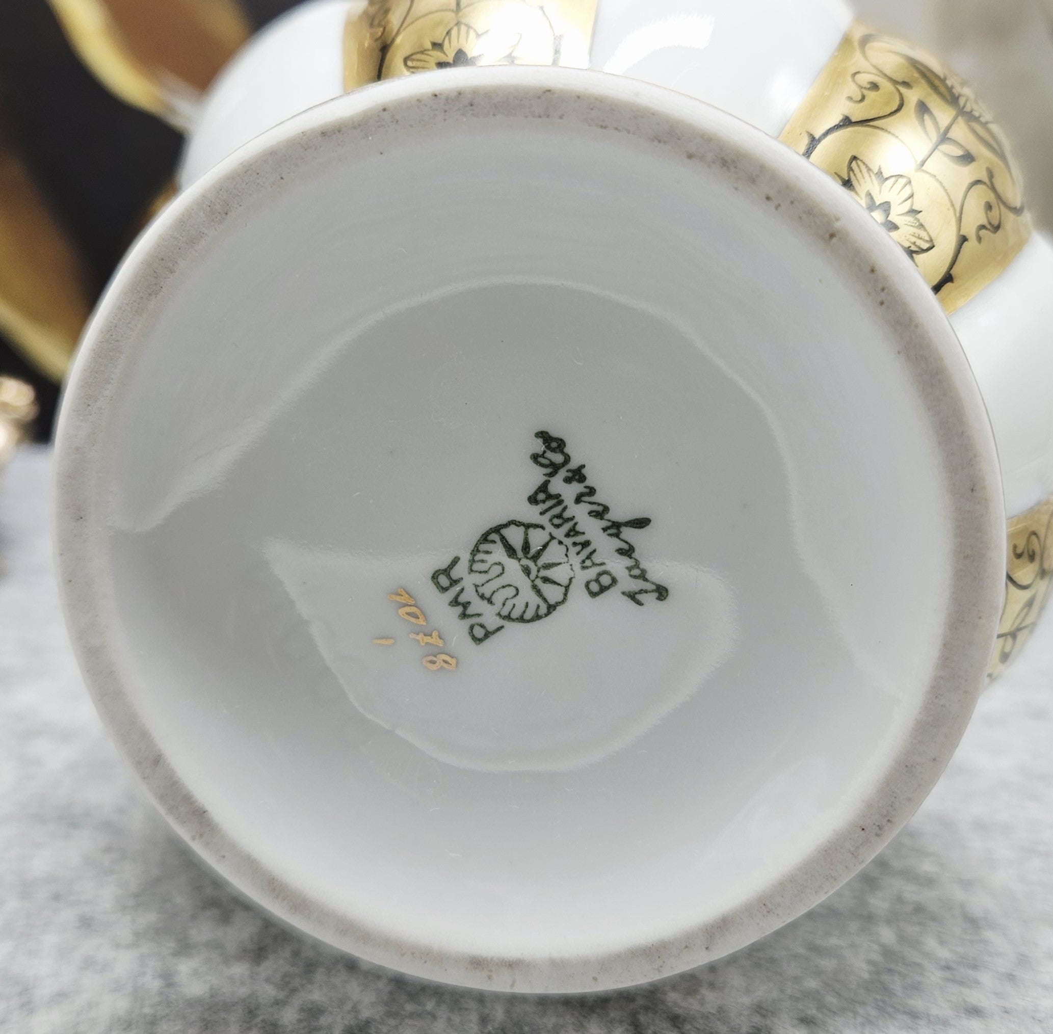 "PMR Bavaria Jaeger & co Porzellanvase mit Goldbändern und schwarzen B – meinantik.de