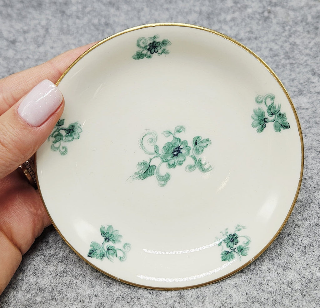 Material: Echtes Elfenbein-Porzellan (Elfenbein)Dekoration: Grünliche Blumen, vergoldeter Henkel, Füße und RandZustand: Sehr gut, ohne Risse oder sichtbare Beschädigungen. Die Dekoration kann minimale Gebrauchsspuren aufweisen.