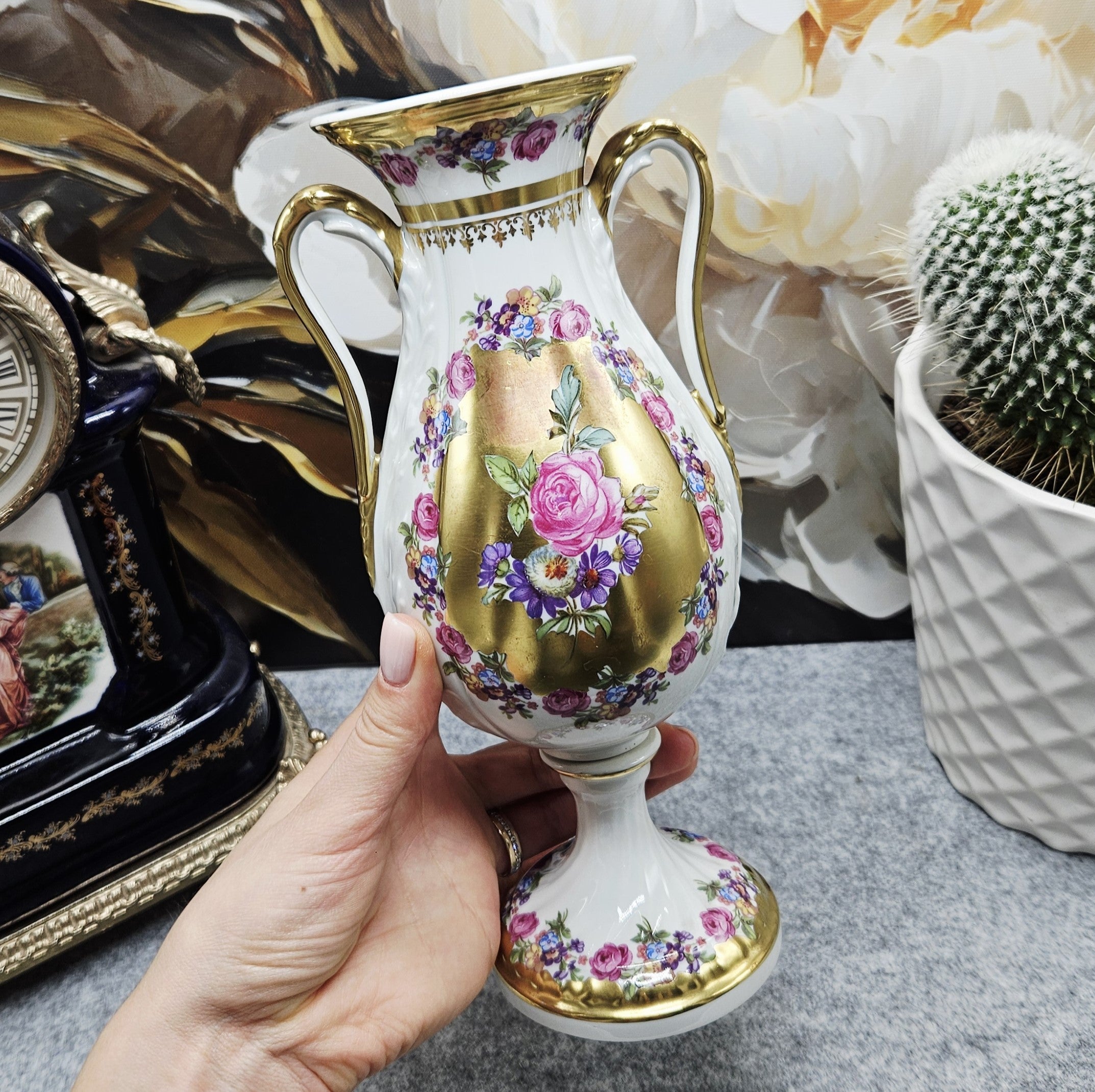 Reich vergoldete, elegante, dekorative Rudolf Wachter Porzellanvase mi – meinantik.de