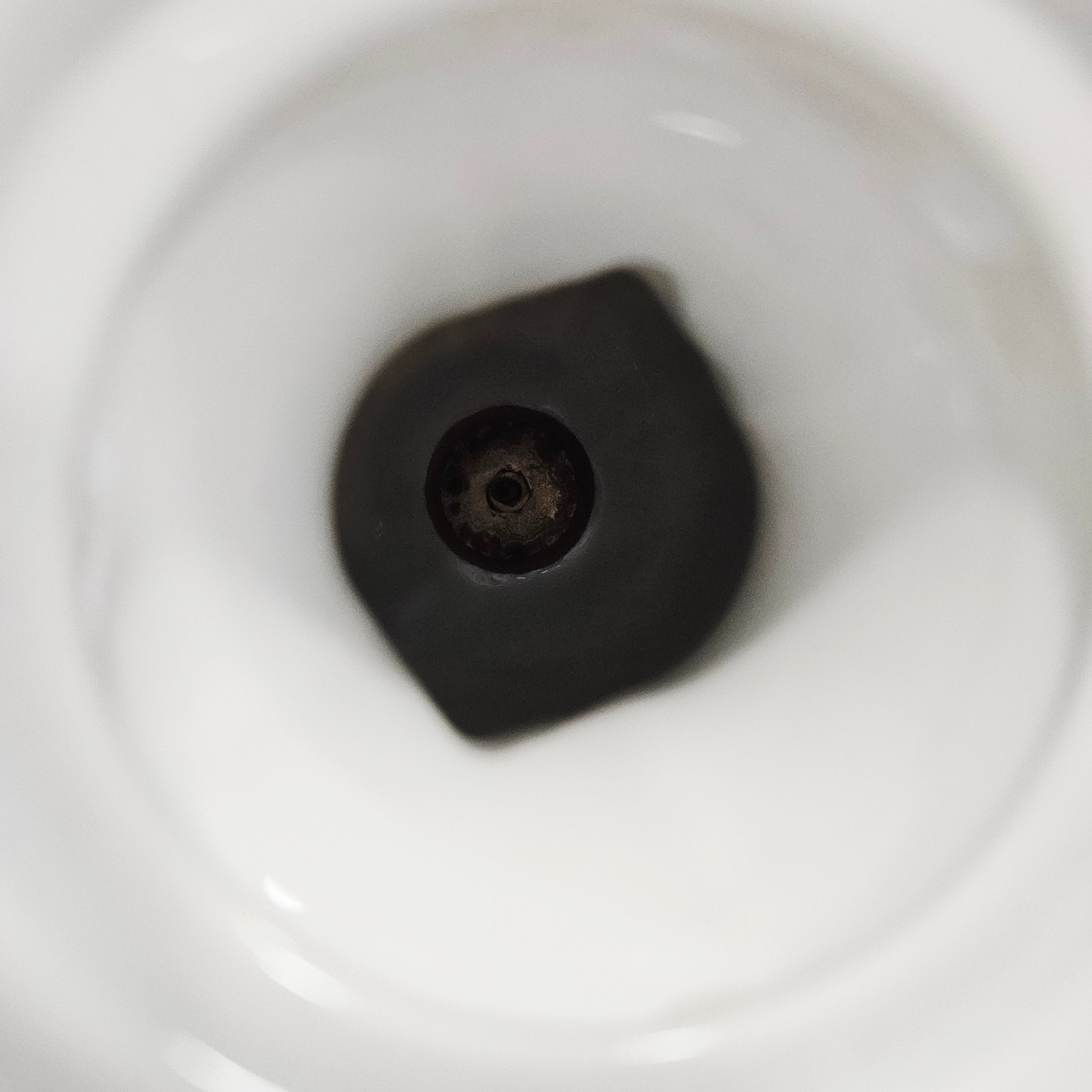 Wichtig: Die Vase und ihr Ständer sind miteinander verschraubt, so dass die Struktur stabil ist und nicht auseinanderfällt. Der Befestigungsmechanismus, der im Inneren sichtbar ist, ist original.