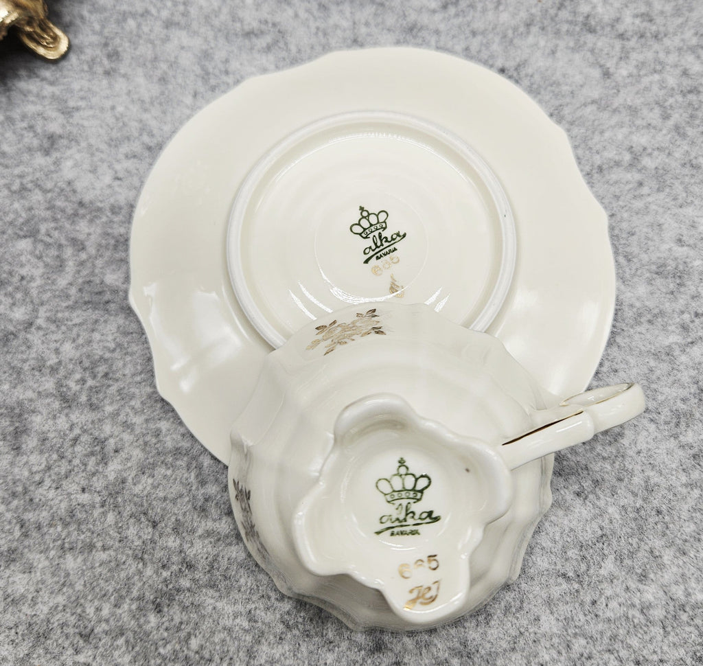 Alka Echt Gold Luxus Porzellan Espressotasse und Untertasse Sammlung.