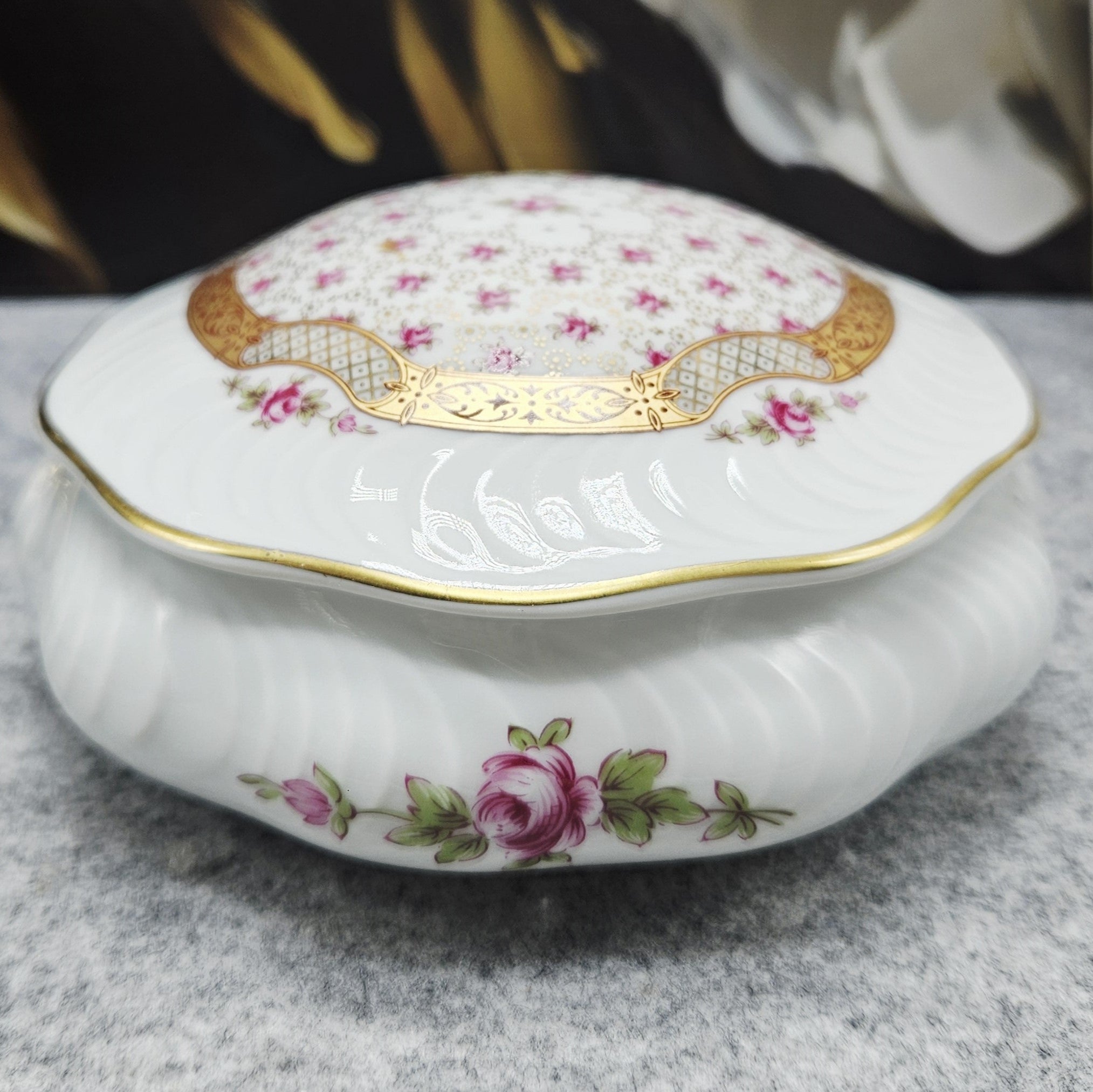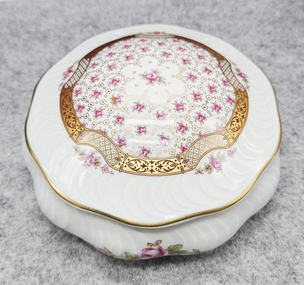 Es handelt sich um ein Sammlerstück aus hochwertigem Limoges-Porzellan, das sich für die Aufbewahrung kleiner Gegenstände oder als raffinierte Innendekoration eignet.