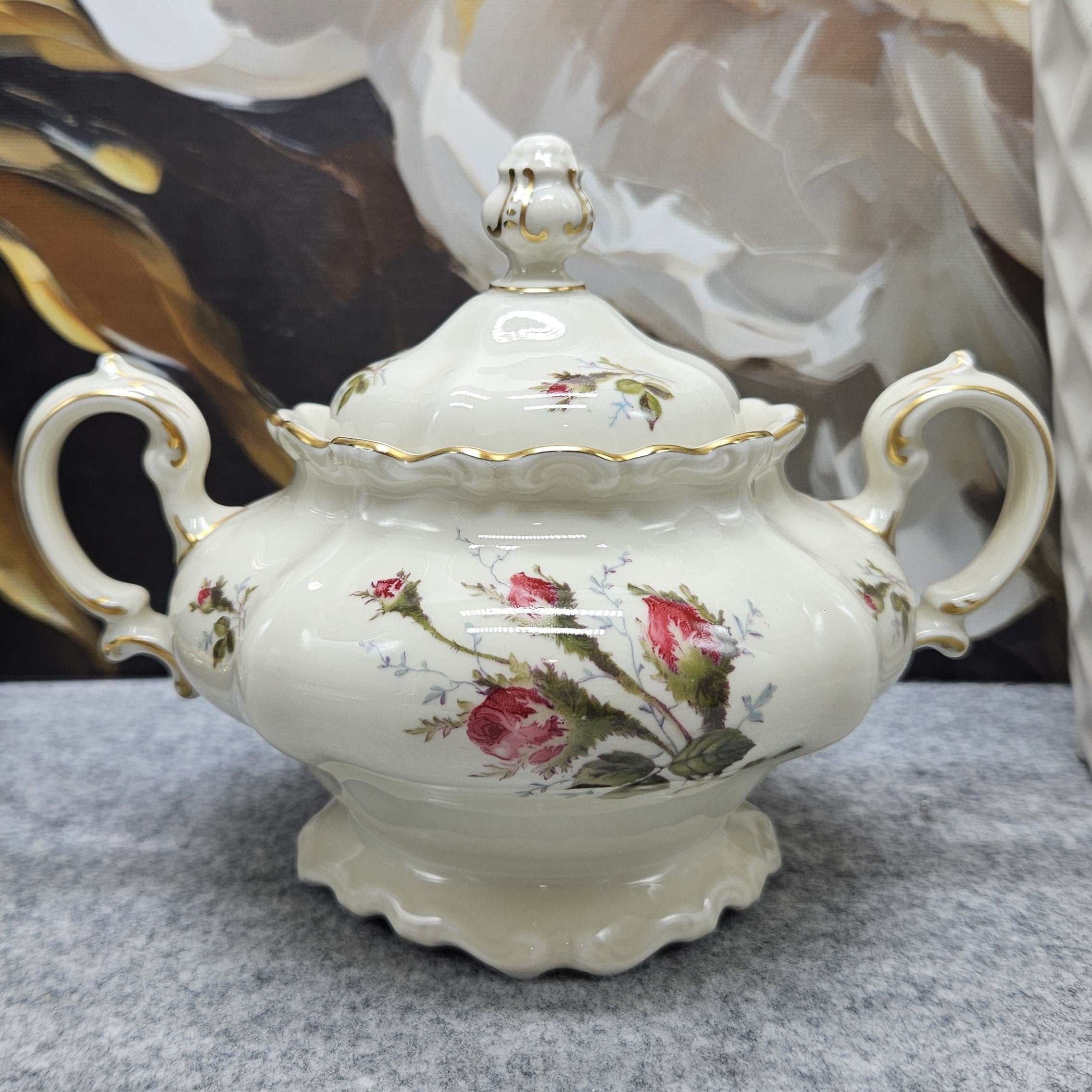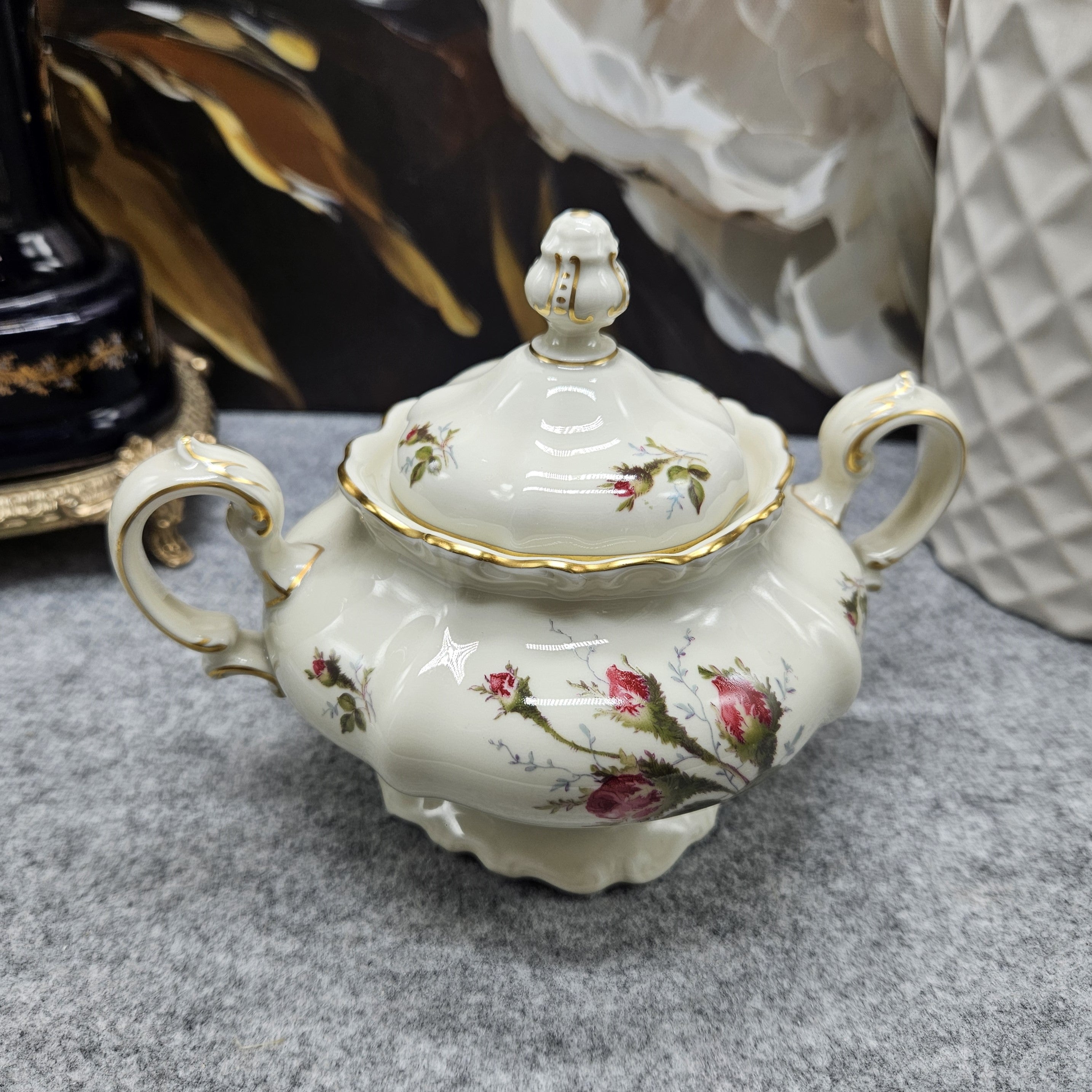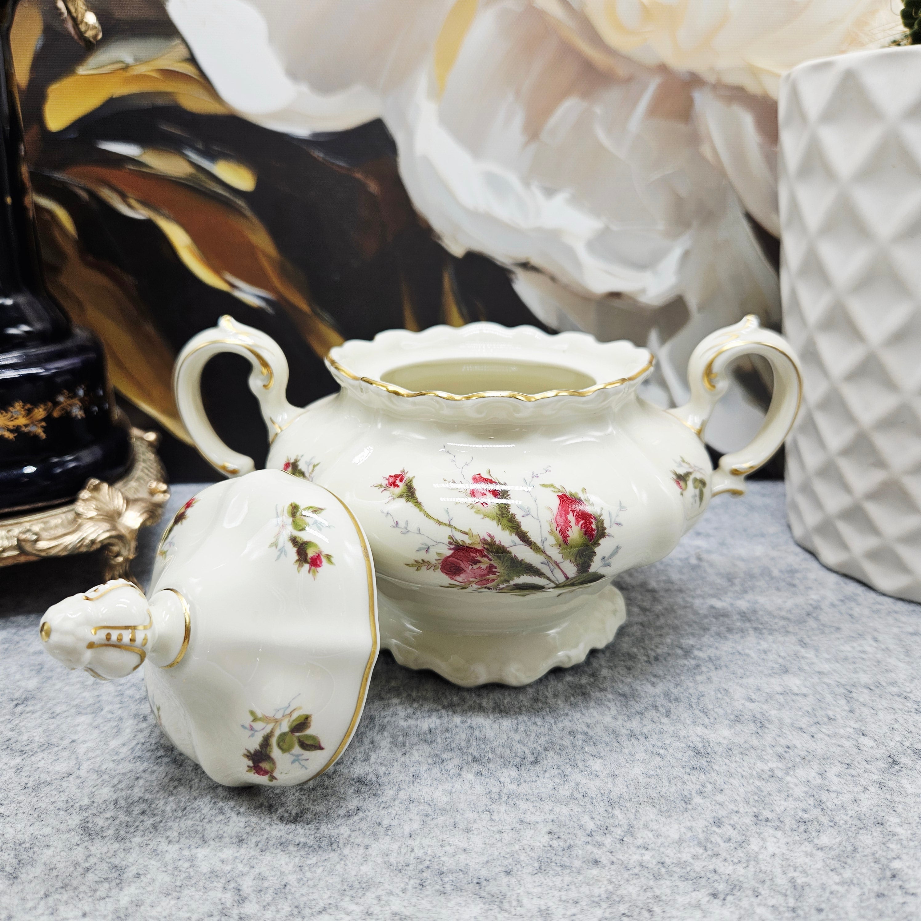 Jedes Detail, von den zierlichen Henkeln bis zum durchbrochenen Deckel mit dekorativem Abschluss, spiegelt die Handwerkskunst der Rosenthal-Manufaktur und ihr außergewöhnliches Erbe an Porzellanqualität wider.
