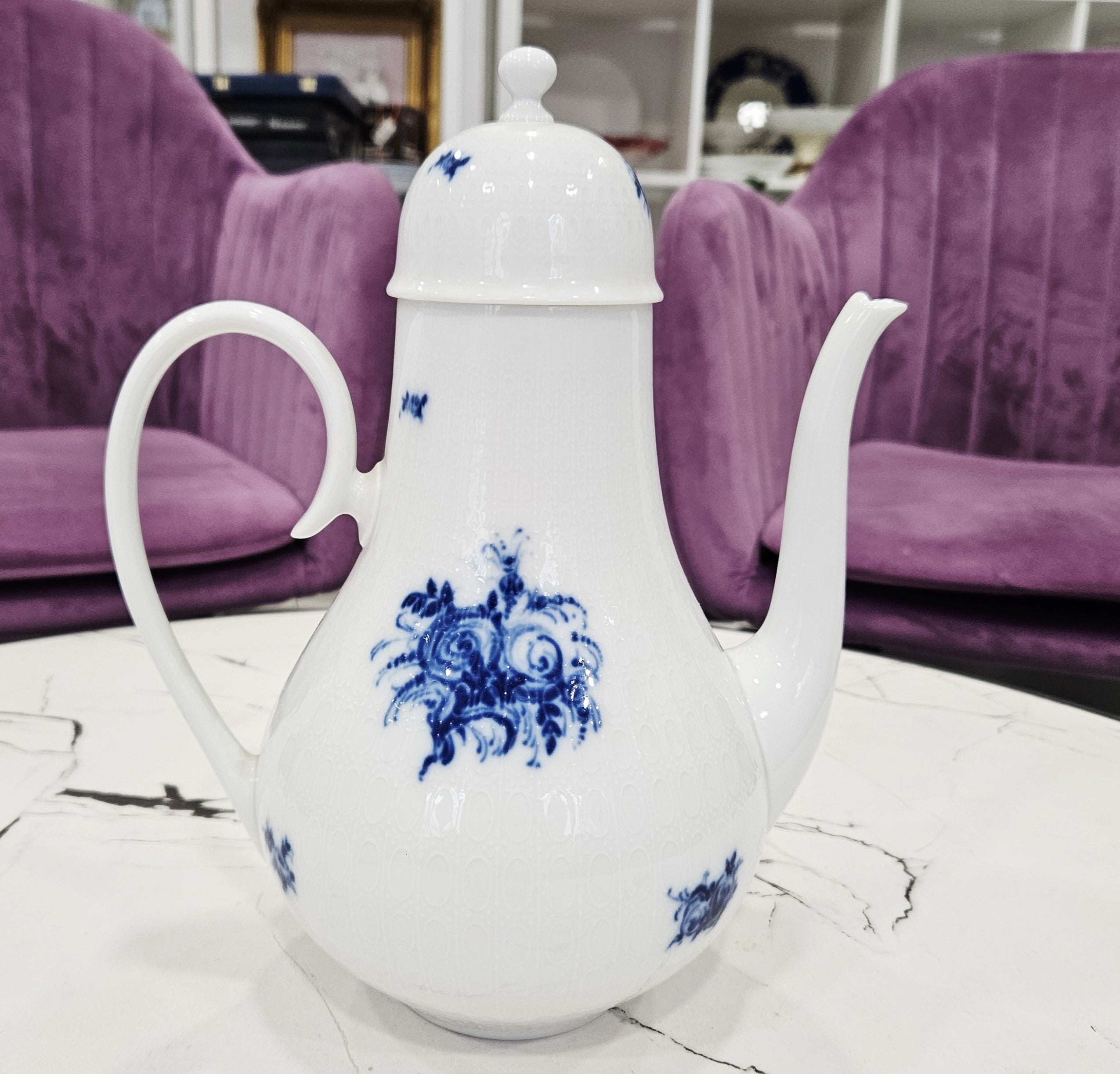 Schöne Rosenthal feines Porzellan Teekanne mit blauen Blumen verziert – meinantik.de