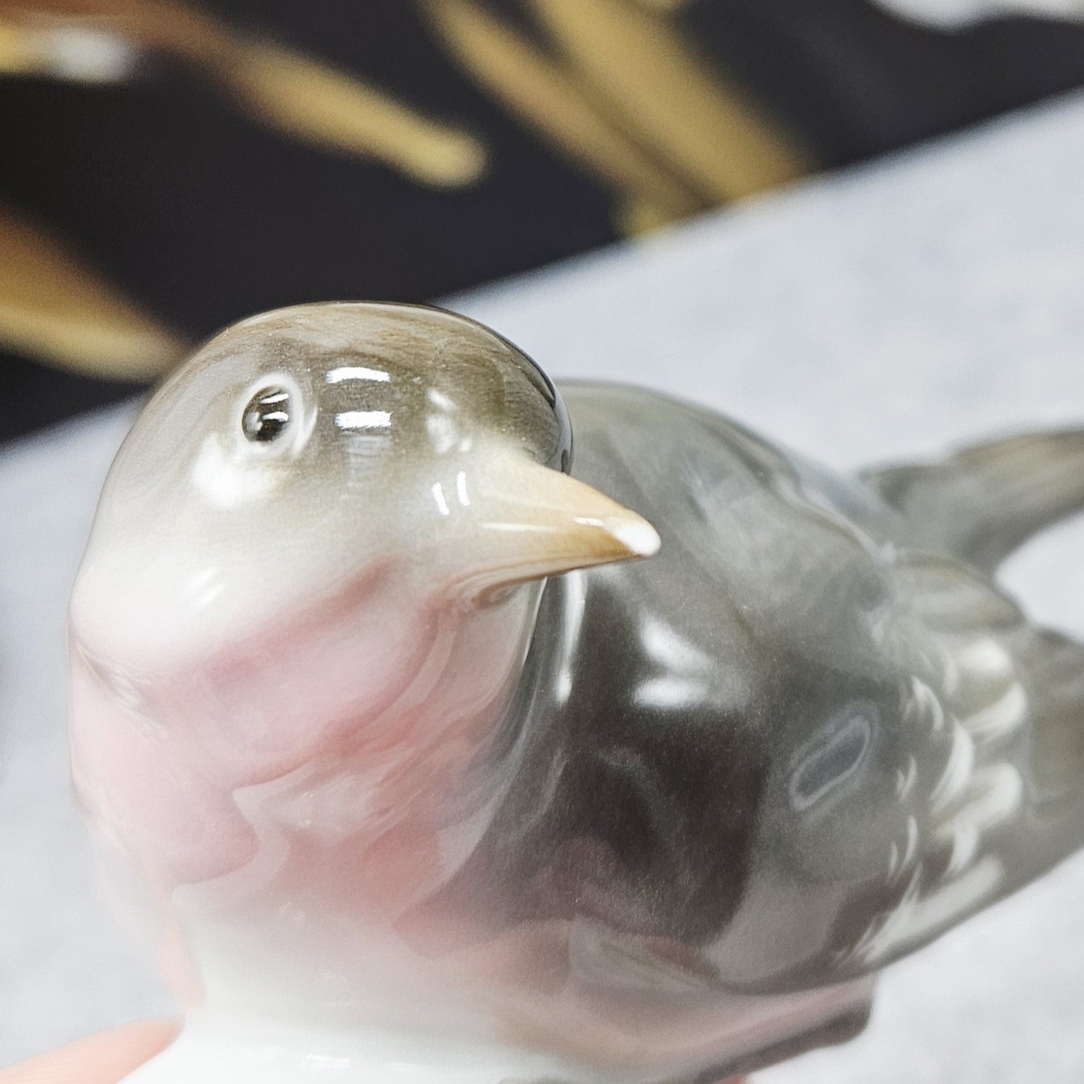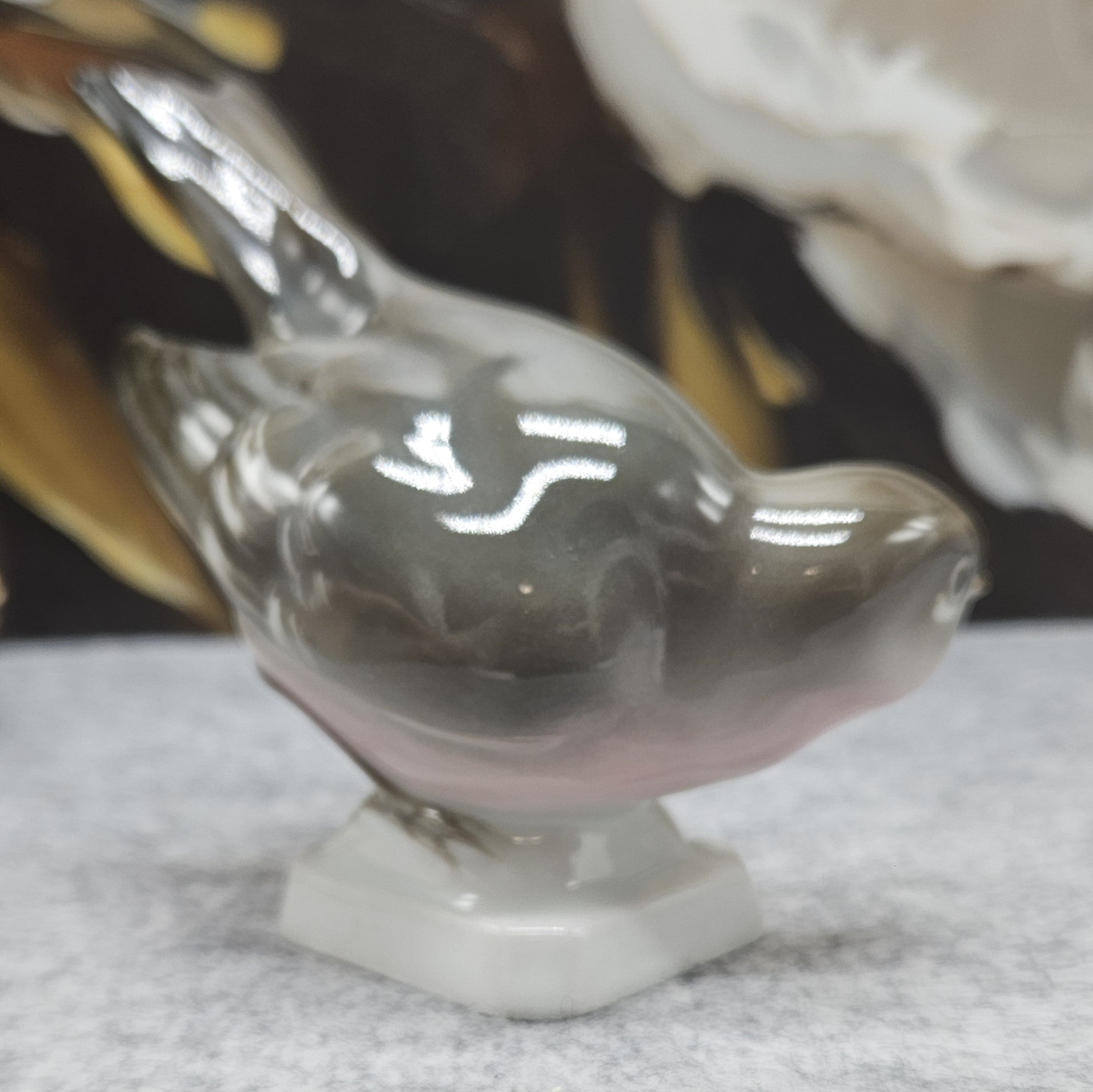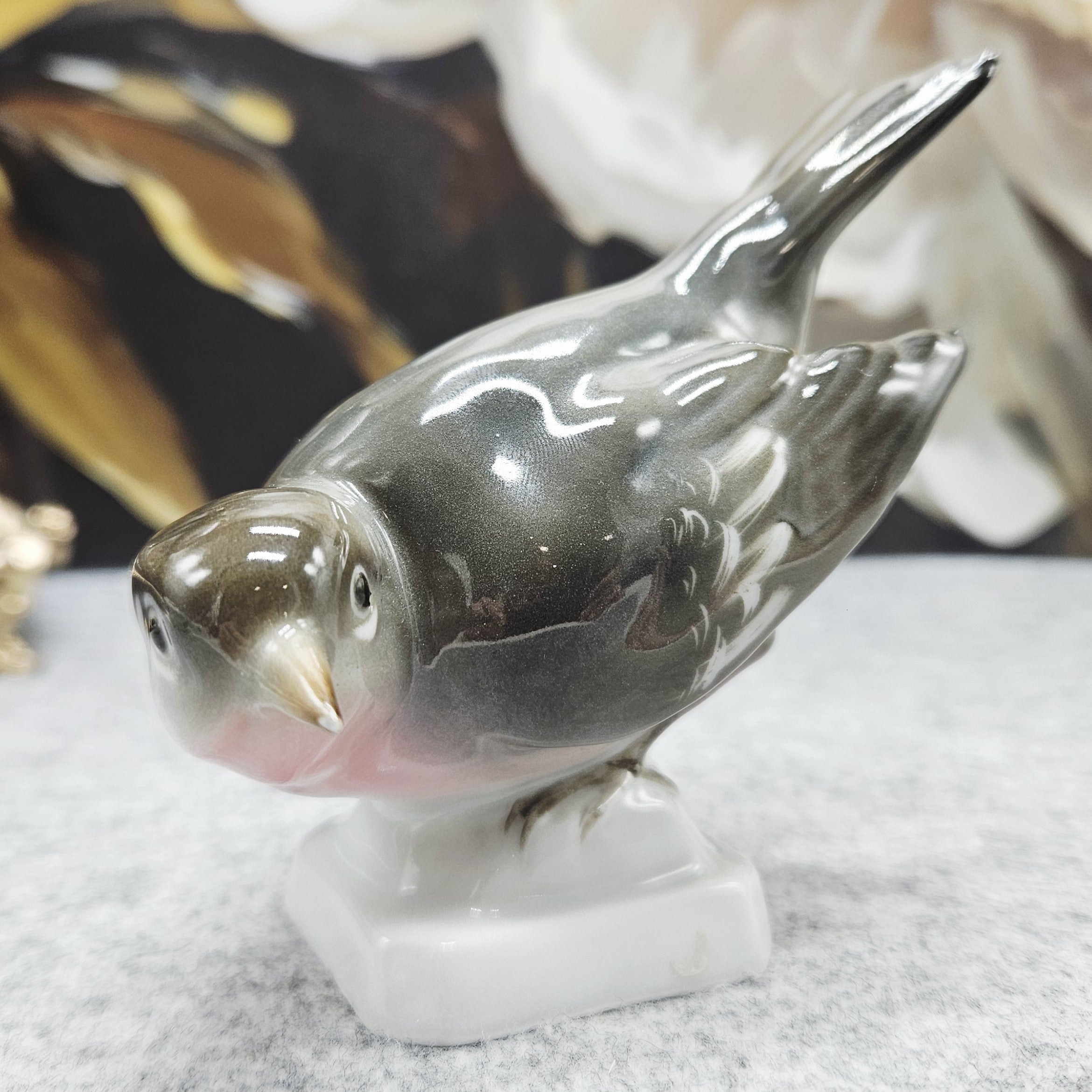 Die elegante Vogelfigur aus Porzellan ist ein zarter und gemütlicher Akzent für Ihr Interieur. In sanften grau-grünen Tönen, mit einem leicht rosafarbenen Bauch und einer glänzenden Glasur, zeichnet sie sich durch ihre sorgfältig gearbeiteten Details und harmonischen Formen aus. Die robuste weiße Sohle sorgt für Stabilität, während die ruhige Silhouette des Vogels einen Eindruck von Wärme und Natürlichkeit vermittelt. Perfekt zum Dekorieren, Sammeln oder als kleines, aber feines Geschenk.