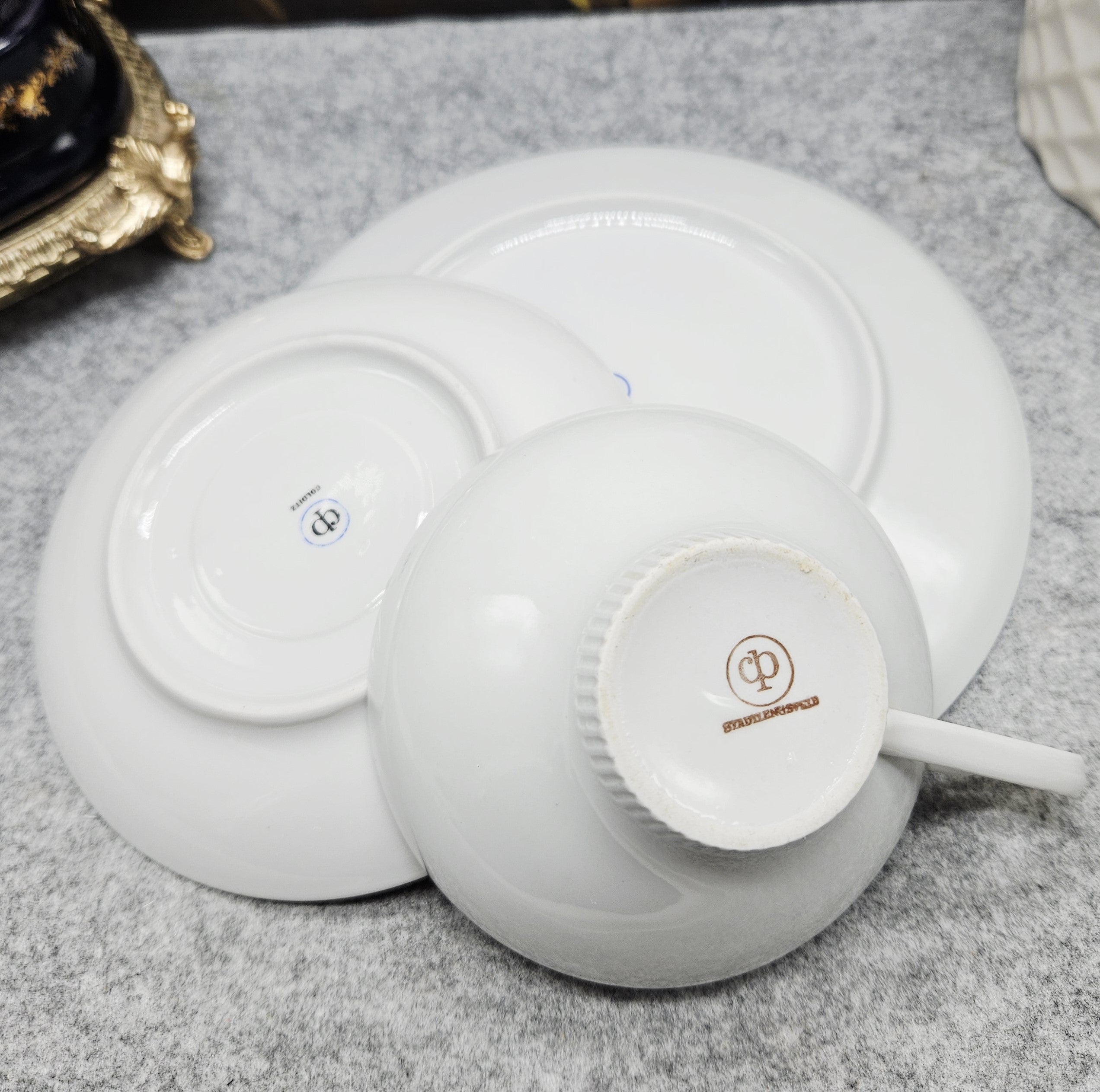 TRIO aus weißem Colditz-Porzellan Tasse und 2 Untertassen verziert mit – meinantik.de